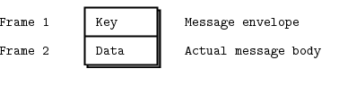 Originally, a ZeroMQ message was one frame, like UDP. We later extended this with multipart messages, which are quite simply series of frames with a “more” bit set to one, followed by one with that bit set to zero. The ZeroMQ API then lets you write messages with a “more” flag and when you read messages, it lets you check if there’s “more”.