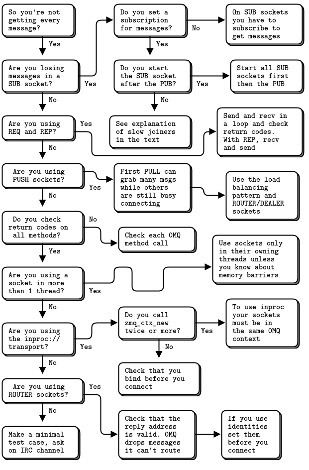 As you build applications with ZeroMQ, you will come across this problem more than once: losing messages that you expect to receive. We have put together a diagram that walks through the most common causes for this.